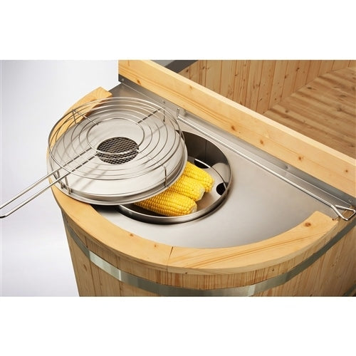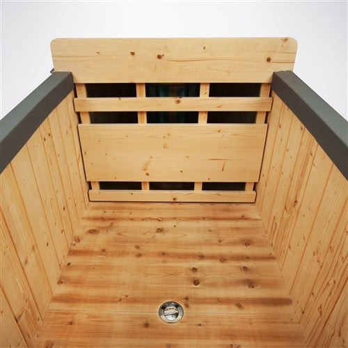 This charcoal-heated hot tub has a five to six hour heating time, however this ingenious design ensures that no energy is wasted. While the water heats to your ideal temperature, use the attached charcoal stove to prepare an outdoor meal for two – ideal for steaming vegetables or grilling a steak! Light the stove charcoal easier with our combustion improvement feature, which holds fuel under the charcoal to ensure an easy flame; an air intake vent below keeps the fire going. Cleanup is just as easy with the ash catcher below, which can be emptied when you are finished.