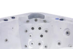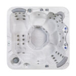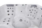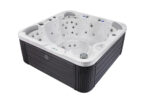 This 79 x 79 inch Jersey hot tub features ergonomic seating for 5 individuals and 1 lounge seat, providing maximum comfort for larger groups. 46 massage jets combined with neck and shoulder massage system create a blissful spa environment. Pacticality and convenience are enhanced by two-stair entry design for easy access. Uniquely designed waterline lighting creates a calming atmosphere and a soft, modernistic exterior design offers a pleasing aesthetic. All these advantages in a single product offer an unbeatable combination of comfort and low space requirements.