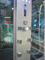 The connection is located behind the shower hot/cold controls which differ per unit. Normally the hot/cold is about 30″ from the floor on the back of the unit. Flex hoses are included for easy hookups no matter where your current hot/cold is located. Refer to the listing page of each steam shower for the exact location which can be seen in the diagrams towards the bottom of the page.